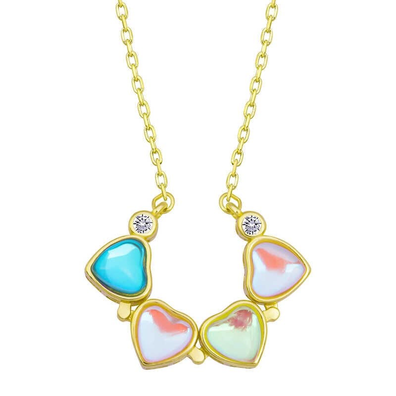 Dört yapraklı yonca bütün kültürlerde iyi şansın sembolü olarak kabul edilir. Birinci yaprak ümidi, ikincisi imanı, üçüncüsü aşkı, dördüncü yaprak ise şansı simgeler. Tabiatta çok nadir bulunan bu dördüncü yapraktır. Gümüş renkli zirkon taşlarla süslenmiş renkli kalpli açılabilen yonca kadın kolye, severek kullanabileceğiniz ve sevdiklerinize hediye edebileceğiniz harika bir modeldir. Gümüş renkli taşlı kadın kolye 925 ayar gümüşten imal edilmiştir. Gümüş kolye üzerinde gold kaplama yapılmıştır. Gold kaplama yapılan gümüş kadın kolyeler parlaklığını uzun süre muhafaza eder, oksitlenmesi gecikir. Gümüş olan zincir boyu ortalama 45 cm'dir. Tüm gümüş kadın kolye modellerimizde olduğu gibi gümüş renkli açılabilen yonca kadın kolye de el emeği ile üretilmiştir. 3 farklı şekilde kullanabilirsiniz. Gümüş ve değerli taşlar nedeniyle ürün ağırlığında ± %10 sapma olabilmektedir.