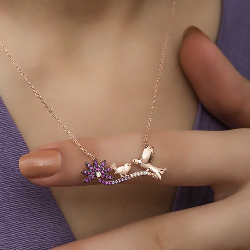925 Ayar Gümüş Rose Anne Ve Yavru Kuş Kadın Gümüş Kolye T4287 (491491)