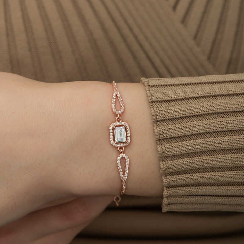 Gümüş Rose Dikdörtgen Baget Bileklik