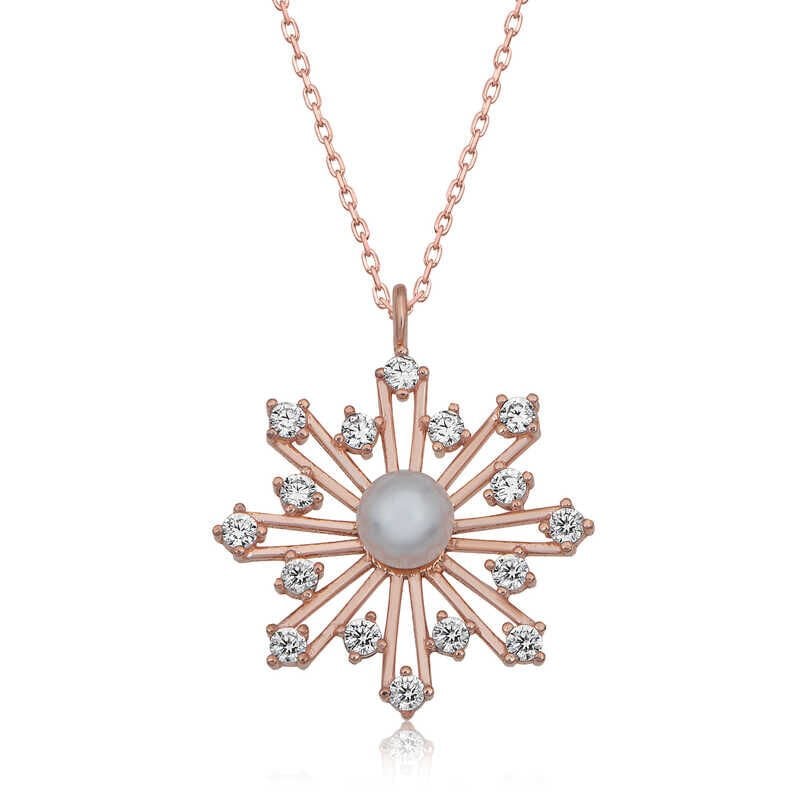 925 Ayar Gümüş Rose İncili Kar Tanesi Kadın Gümüş Kolye T7019 (491491)