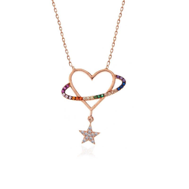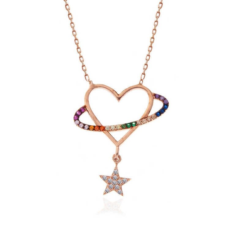 Gümüş Rose Kalp Yıldız Kadın Kolye