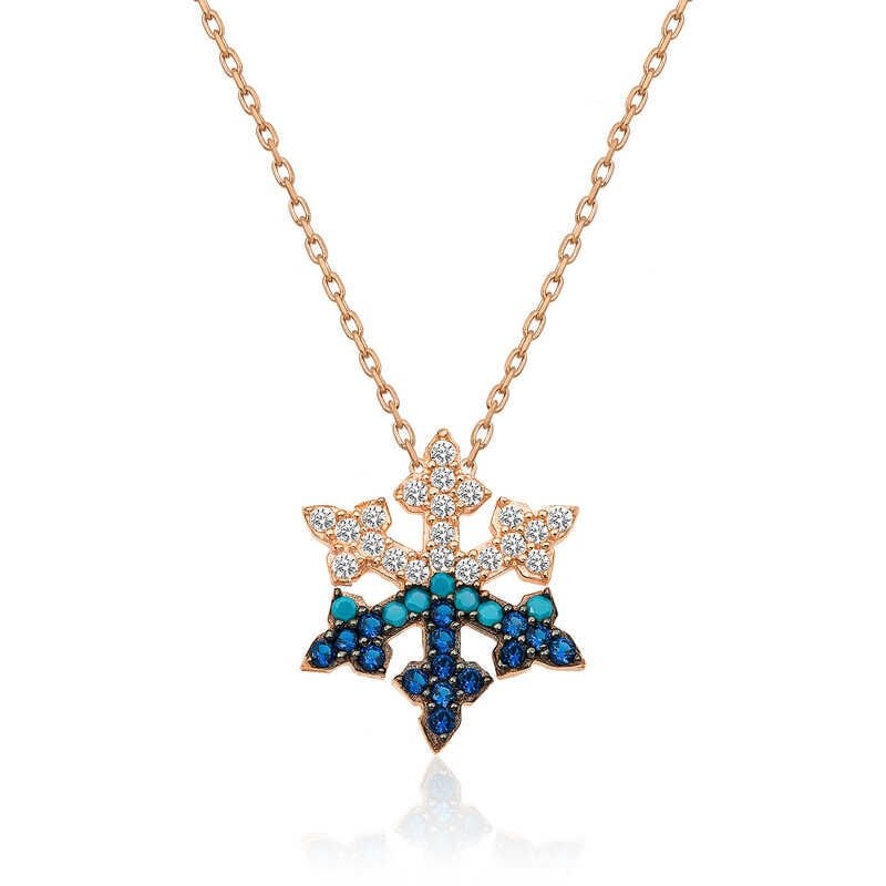Kadınların ışıltısı, berraklığı kar tanesine benzetilip özel olarak tasarlanmıştır. Kar tanesinin asilliği her dönemde dikkat çekmeyi başarmıştır. Bunun yanında insanların tıpkı kar taneleri gibi birbirlerine zarar vermeden de mutlu bir şekilde yaşayabileceklerini sembolize etmektedir. Bu şık kolye; doğum günü hediyesi, sevgililer günü hediyesi veya annelere hediye olarak özel günlerde tercih edilebilecek mükemmel bir seçenektir. Kolye, 925 ayar gümüşten imal edilmiştir. Gümüş üzerine rose altın kaplama yapılmıştır. Rose altın kaplama yapılan ürünler parlaklığını uzun süre muhafaza eder, gümüşü pembe renge dönüştürür ve oksitlenmesi gecikir. Tüm gümüş kolyelerde olduğu gibi bu gümüş kar tanesi kolye de tamamı el emeği ile üretilmiştir. Gümüş ve değerli taşlar nedeniyle belirtilen ortalama ürün ağırlığında ± %10 sapma olabilmektedir.