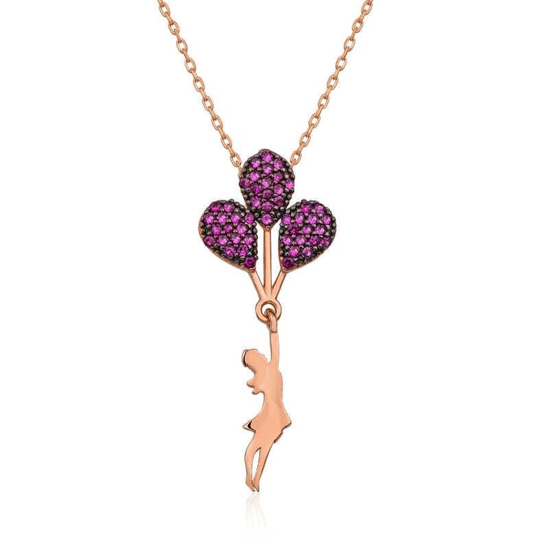 Gümüş Rose Kırmızı Balonlu Kız Kolye