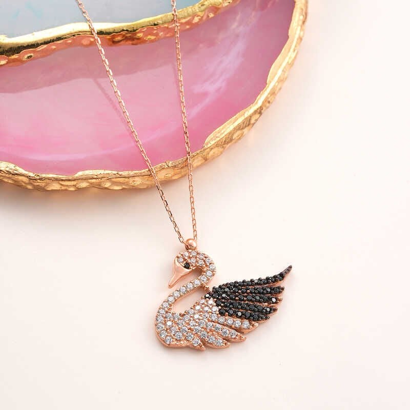 Gümüş Rose Kuğu Kadın Kolye