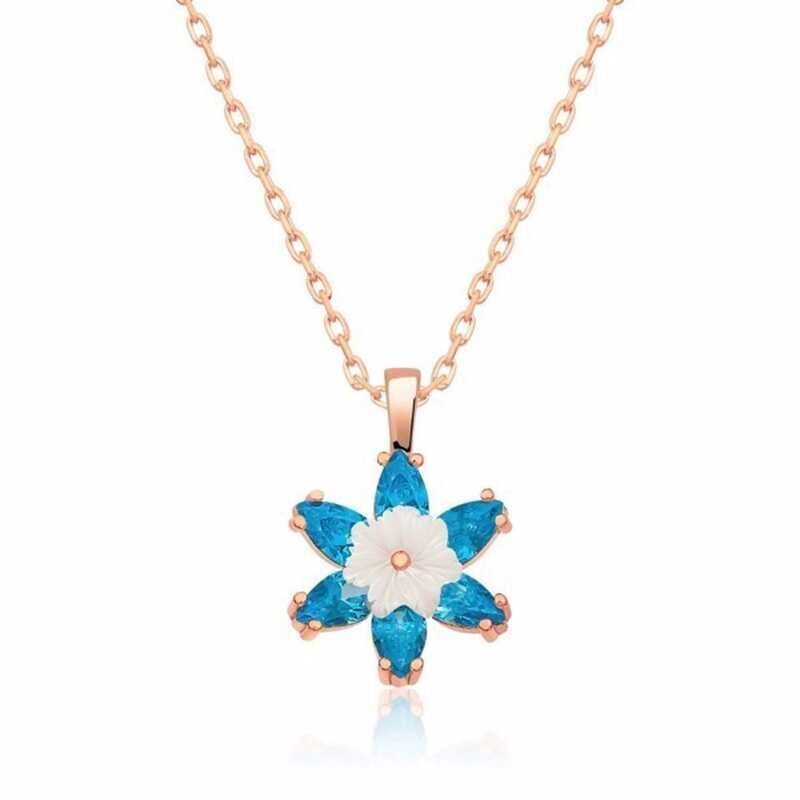 925 Ayar Gümüş Rose Mavi Lotus Çiçeği Kadın Gümüş Kolye T5341 (491491)