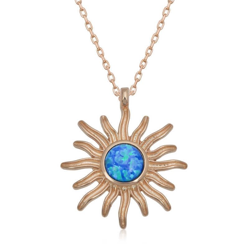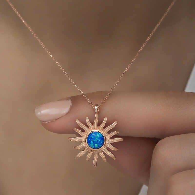 Gümüş Rose Mavi Opal Taşlı Güneş Kadın Kolye