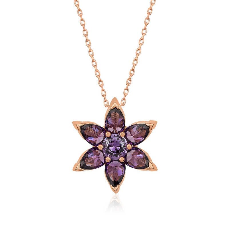 Sevdiklerinize duygularınızı ifade etmenin yolu neden çiçek desenli zarif bir kolye olmasın? Özel zamanlarda O’na gönderebileceğiniz, hediye seçenekleri arasında yer alan bu şık kolye sevdiklerinizi sevindirmenin en güzel yolları arasında yer almaktadır. En kaliteli, en ışıltılı taşlarla hazırlanmış gümüş mor çiçek bayan kolye; sevgisini bir kez daha anlatmak isteyenleri, sen bir çiçeksin demek isteyenleri bekliyor. Bu özel tasarım gümüş mor çiçek bayan kolye 925 ayar gümüşten imal edilmiştir. Gümüş üzerine rose kaplama yapılmıştır. Rose kaplama yapılan gümüş bayan kolye modelleri parlaklığını uzun süre muhafaza eder ve oksitlenmesi gecikir. Gümüş olan zincir boyu ortalama 45 cm'dir. Tüm bayan gümüş kolye modellerinde olduğu gibi gümüş mor çiçek kolye de el emeği ile üretilmiştir. Gümüş ve değerli taşlar nedeniyle belirtilen ürün ağırlığında ± %10 sapma olabilmektedir.