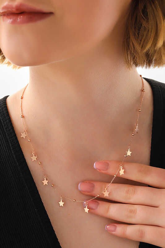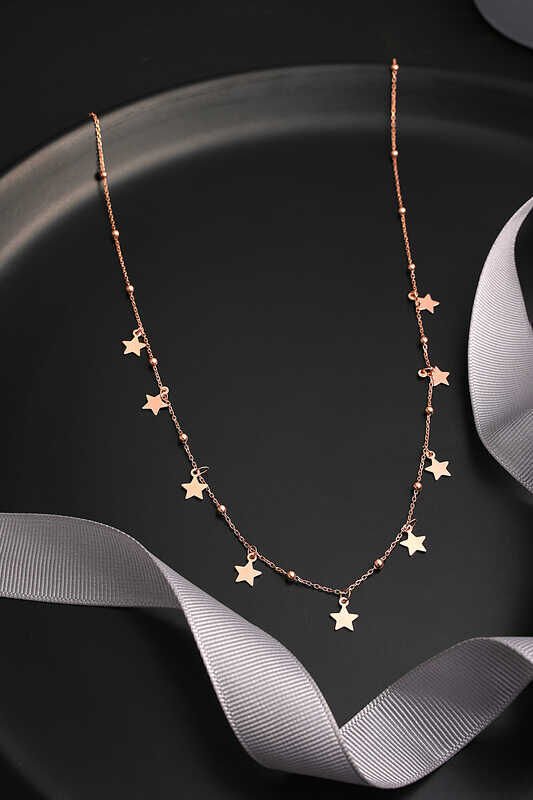 925 Ayar Gümüş Rose Yıldızlı Dorika Kadın Gümüş Kolye T7914 (491491)