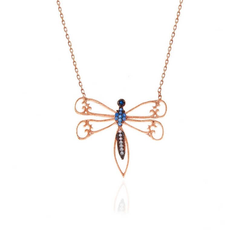 Yusufçuk, bağlılığın, sadakatin, tek eşliliğin sembolüdür... Ölüme rağmen aşkından vazgeçmez yusufçuk... Doğa gereği, erkek yusufçuk ile dişi yusufçuğun çiftleşmesinin ardından erkek yusufçuk ölmektedir. Sonunda ölüm olduğunu bile bile erkek yusufçuk, hayatı boyunca tek bir dişi ile çiftleşiyor ve bundan asla vazgeçmiyor... Kolye, böyle hüzün ve sadakat kokan bu güzellikten ilham alarak tasarlanmıştır... Bu zarif kolye; doğum günü hediyesi, sevgililer günü hediyesi veya özel günlerde tercih edilebilecek müthiş bir kolyedir. Bu şık tasarım 925 ayar gümüşten imal edilmiştir. Gümüş üzerine rose kaplama yapılmıştır. Rose kaplama yapılan kolyeler parlaklığını uzun süre muhafaza eder, gümüş rengini pembe renge dönüştürür. Kolye üzerinde bulunan taşlar zirkondur. Tüm kadın gümüş kolyelerde olduğu gibi gümüş yusufçuk kadın kolye de el emeği ile üretilmiştir. Gümüş ve değerli taşlar nedeniyle belirtilen ürün ağırlığında ± %10 sapma olabilmektedir.