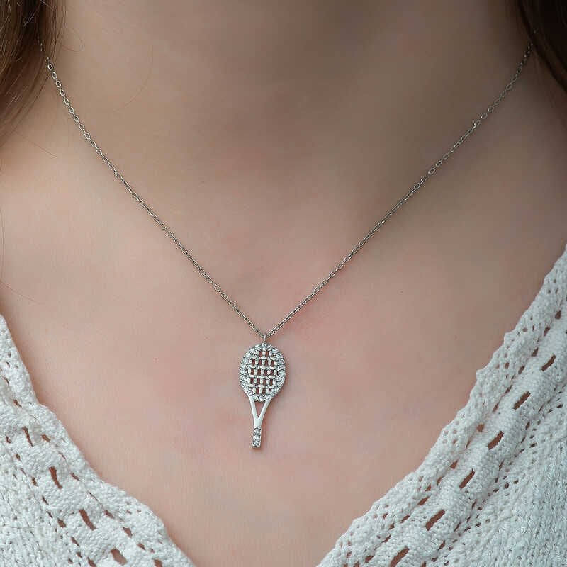 Tenis raketi kolye, bayanların günlük hayatlarında severek kullanabilecekleri alışılmışın dışında yer alan trend takılardan biridir. Spor şıklığınıza son dokunuşu bu kolye ile yapmaya ne dersiniz.. Bu şık kolye; doğum günü hediyesi, sevgililer günü hediyesi olarak özel günlerde tercih edilebilecek mükemmel bir seçenektir. Gümüş tenis raketi kolye 925 ayar gümüşten imal edilmiştir. Bu kolye üzerinde rodyum kaplama yapılmıştır. Tüm gümüş kolye modellerinde olduğu gibi gümüş tenis raketi kolye modeli de el emeği ile üretilmiştir. Kolyenin zincir uzunluğu 45 cm'dir. Gümüş ve değerli taşlar nedeniyle belirtilen ortalama ürün ağırlığında ± %10 sapma olabilmektedir.