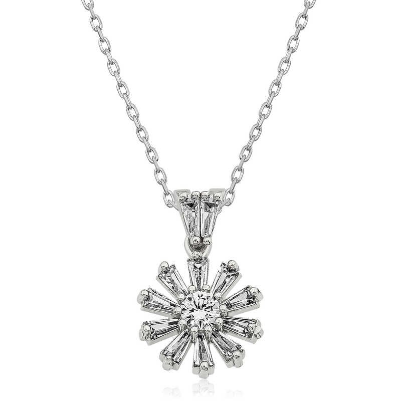 Gümüş Trapez Taşlı Çiçek Kadın Kolye