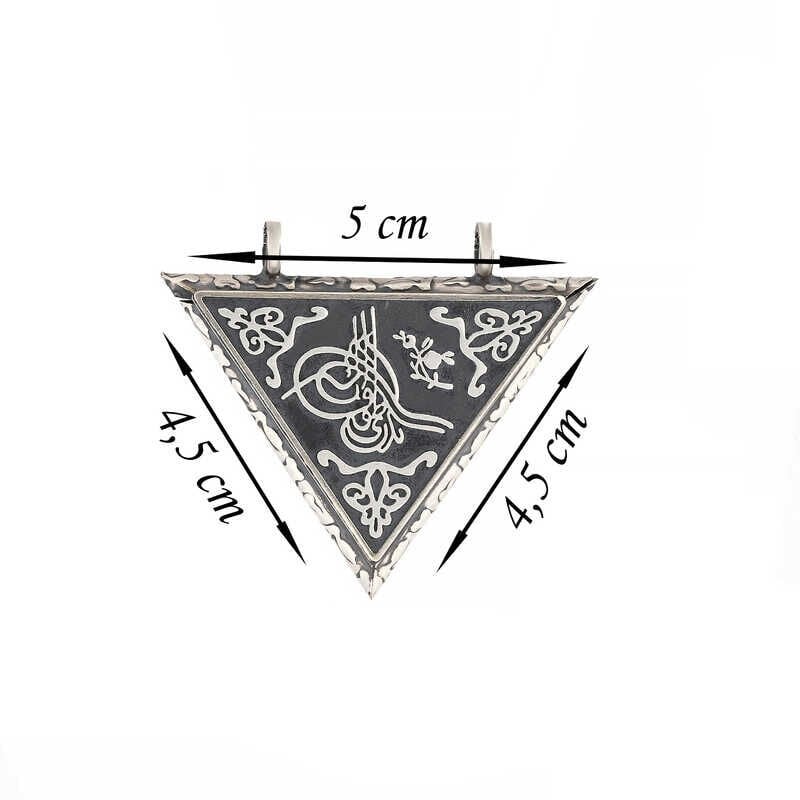 925 Ayar Gümüş Üçgen İçi Açılabilen Tuğra Muskalık Gümüş Kolye T6065 (491491)
