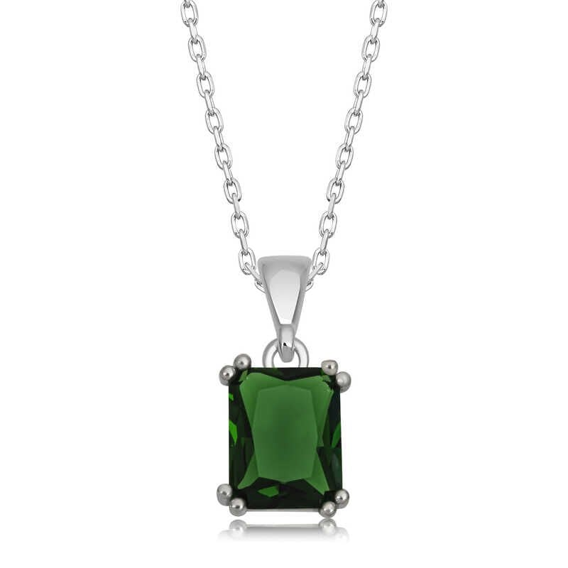 925 Ayar Gümüş Yeşil Kristal Kare Taşlı Kadın Gümüş Kolye T6909 (491491)