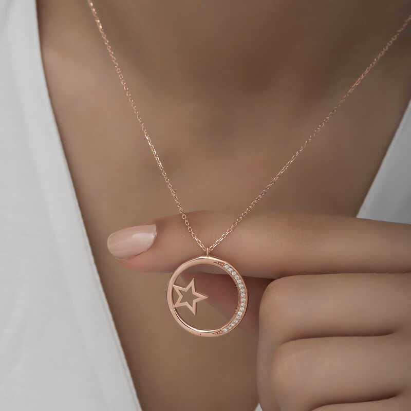 Yıldız, pek çok toplumda ve öğretide şans getirildiğine inanılan uğurlu bir semboldür. Venüs Gezegeninin enerjisini taşır. Venüs Gezegeni, aşk ve aşk enerjisinin de temsilcisidir. Bu şık zirkon taşlardan oluşan yıldız kolye; doğum günü hediyesi, sevgililer günü hediyesi veya özel günlerde tercih edilebilecek mükemmel bir seçenektir. Gümüş rose zirkon taşlı yıldız kadın kolye 925 ayar gümüşten imal edilmiştir. Bu kolye üzerinde rose kaplama vardır. Rose kaplama yapılan gümüş kadın kolye modelleri parlaklığını uzun süre muhafaza eder. Tüm gümüş kadın kolye modellerimizde olduğu gibi gümüş rose taşlı yıldız kadın kolye modeli de el emeği ile üretilmiştir. Gümüş ve değerli taşlar nedeniyle belirtilen ortalama ürün ağırlığında ± %10 sapma olabilmektedir.