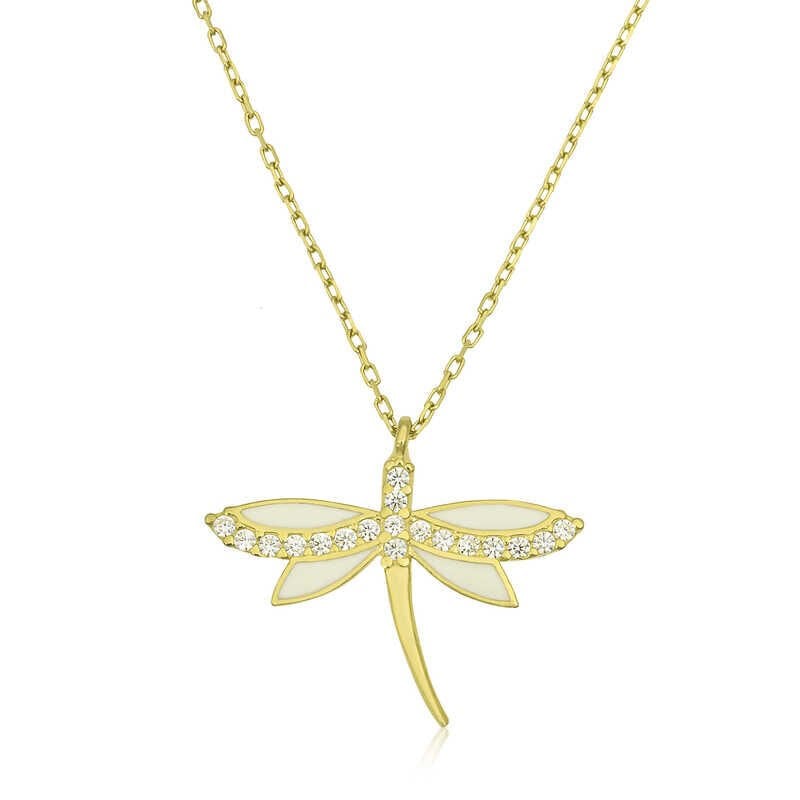 Yusufçuk, bağlılığın, sadakatin, tek eşliliğin sembolüdür... Ölüme rağmen aşkından vazgeçmez yusufçuk... Doğa gereği, erkek yusufçuk ile dişi yusufçuğun çiftleşmesinin ardından erkek yusufçuk ölmektedir. Sonunda ölüm olduğunu bile bile erkek yusufçuk, hayatı boyunca tek bir dişi ile çiftleşiyor ve bundan asla vazgeçmiyor... Kolye, böyle hüzün ve sadakat kokan bu güzellikten ilham alarak tasarlanmıştır... Bu zarif kolye; doğum günü hediyesi, sevgililer günü hediyesi veya özel günlerde tercih edilebilecek müthiş bir kolyedir. Bu şık tasarım 925 ayar gümüşten imal edilmiştir. Gümüş üzerine gold kaplama yapılmıştır. Gold kaplama yapılan kolyeler parlaklığını uzun süre muhafaza eder. Kolye üzerinde bulunan taşlar zirkondur. Tüm bayan gümüş kolyelerde olduğu gibi gümüş yusufçuk bayan kolye de el emeği ile üretilmiştir. Gümüş ve değerli taşlar nedeniyle belirtilen ürün ağırlığında ± %10 sapma olabilmektedir.