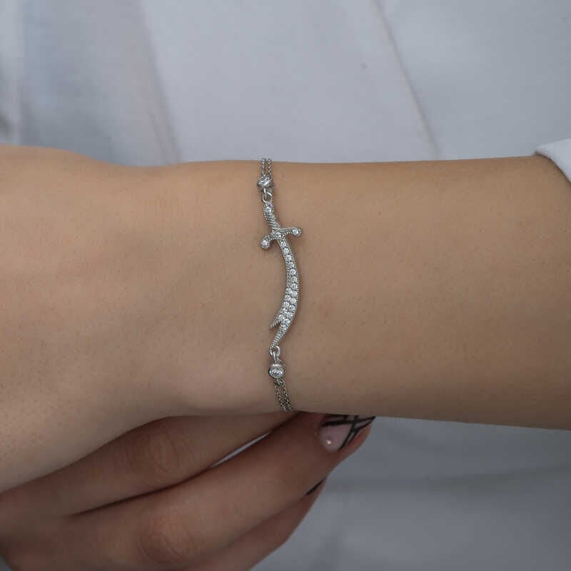 Hz. Ali Uhud savaşında çokça kahramanlık göstermiştir. Savaşta Peygamber Efendimizi korumak isterken kılıcı kırılır.Bunu gören Peygamber Efendimiz kendi kılıcı olan Zülfikar’ı kendisine vermiştir. Kılıcın keskinliği ile diğer kılıçları ortadan ikiye ayırmış ve savaşlarda destanlar yazdırmıştır. Hz. Ali Zülfikar kılıcıyla beraber savaşlardadır artık... Hz.Ali'nin vefatından sonra kılıcın cennete götürüldüğüne inanılıyor. Bir başka rivayete göre ise Dicle ve Fırat nehirlerinin arasında olduğu biliniyor. İslam ordularına hükmedecek kişi o kılıcın sahibi olup orduların başkomutanı olacaktır. Bu maneviyatla hazırlanmış olan bu tasarım çok dikkat çekicidir. Bu şık bileklik; doğum günü hediyesi, sevgililer günü hediyesi veya annelere hediye olarak özel günlerde tercih edilebilecek mükemmel bir seçenektir. Zülfikar kılıcı kadın bileklik modeli 925 ayar gümüşten imal edilmiştir. Bu özel tasarım üzerinde bulunan taşlar zirkondur. Bu kadın gümüş bileklik üzerine rodyum kaplama yapılmıştır. Rodyum kaplama yapılan bileklikler parlaklığını uzun süre muhafaza eder, oksitlenmeyi geciktirir. Tüm gümüş bilekliklerde olduğu gibi bu gümüş Zülfikar kılıcı kadın bileklik modeli de el emeği ile üretilmiştir. Gümüş ve değerli taşlar nedeniyle belirtilen ortalama ürün ağırlığında ± %10 sapma olabilmektedir.