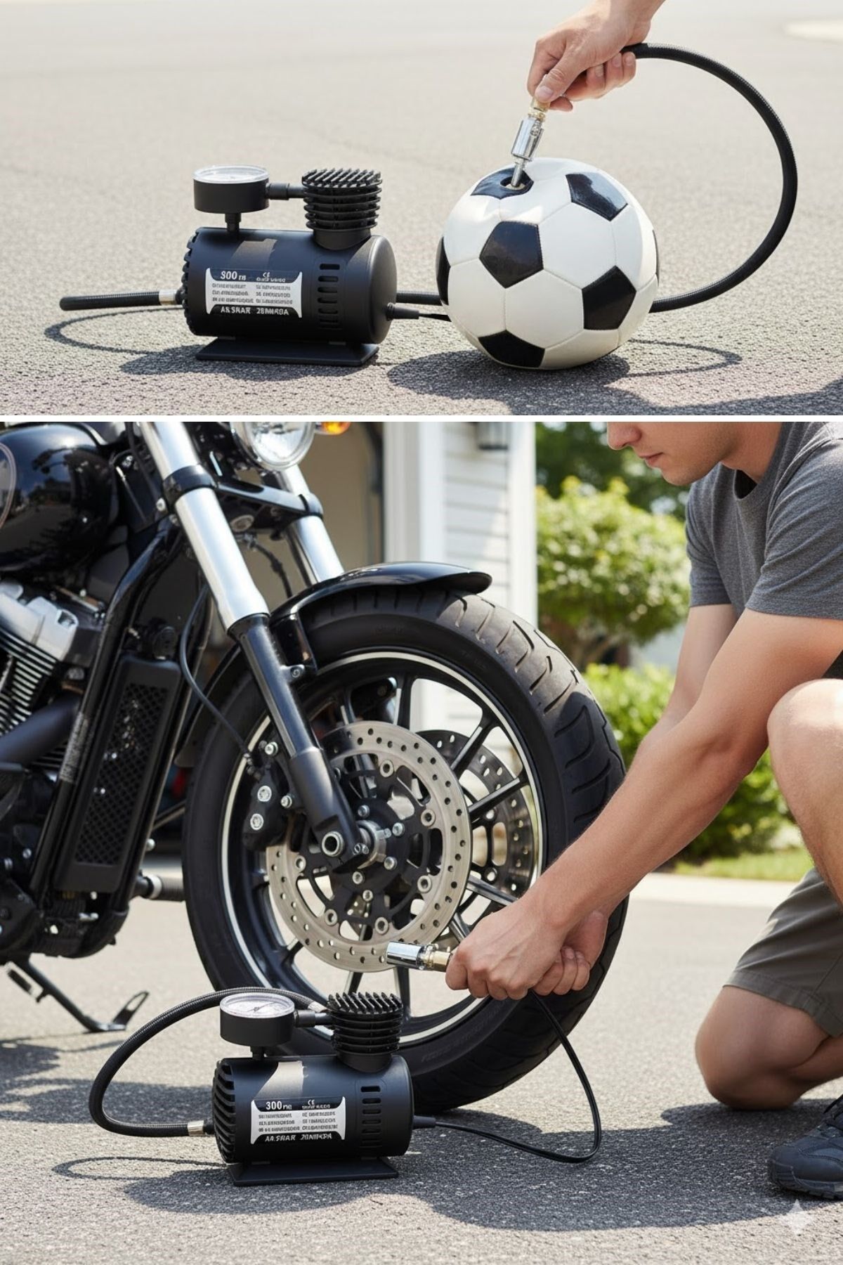 Kısa sürede güçlü hava basıncı oluşturarak araç ve motosiklet lastiklerini etkili şekilde şişirir.