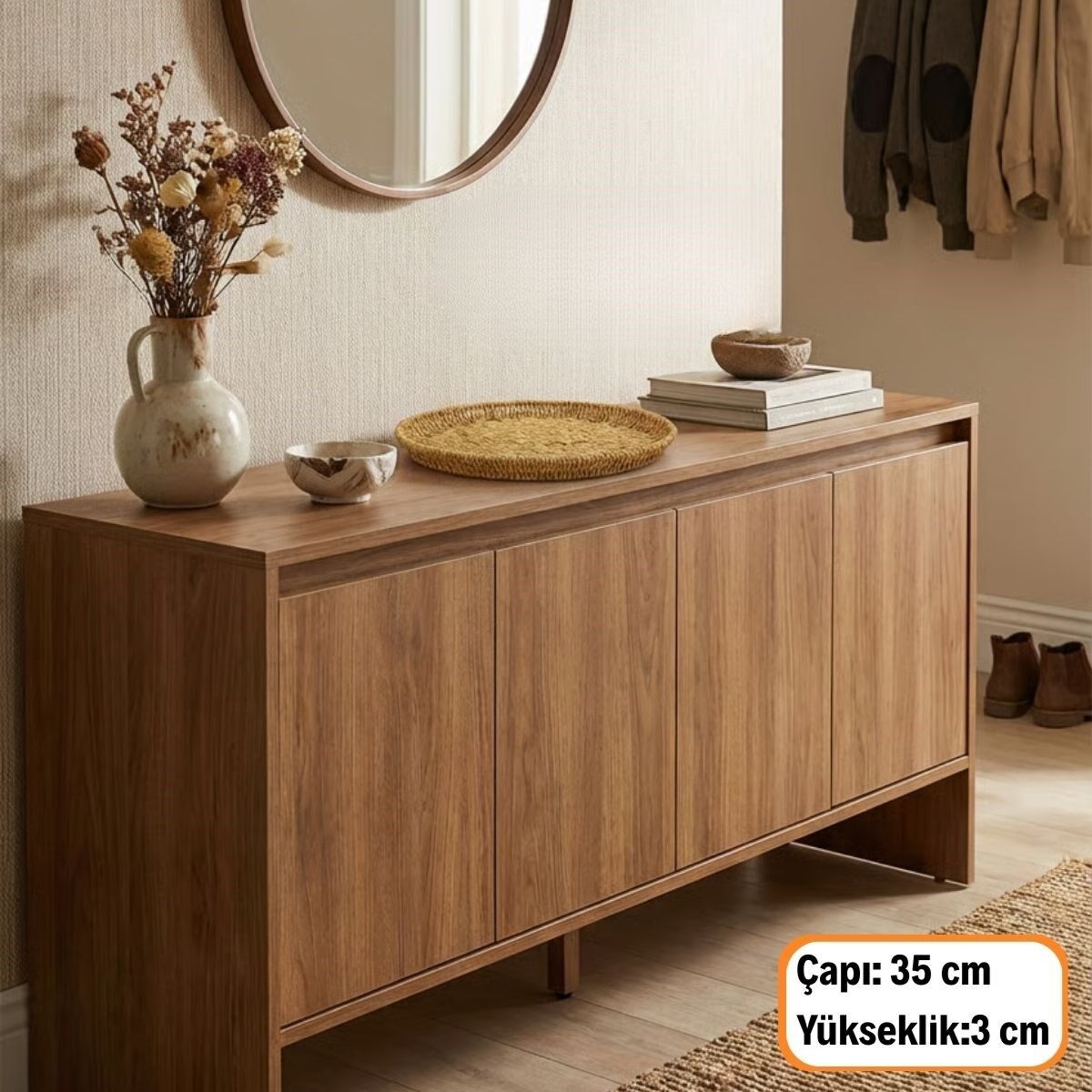 AD 35 cm Plastik Rattan Tepsi – Hasır Görünümlü Dekoratif Servis Tepsisi, Mutfak, Kahvaltı, Sunum ve Masaüstü Çok Amaçlı Organizer