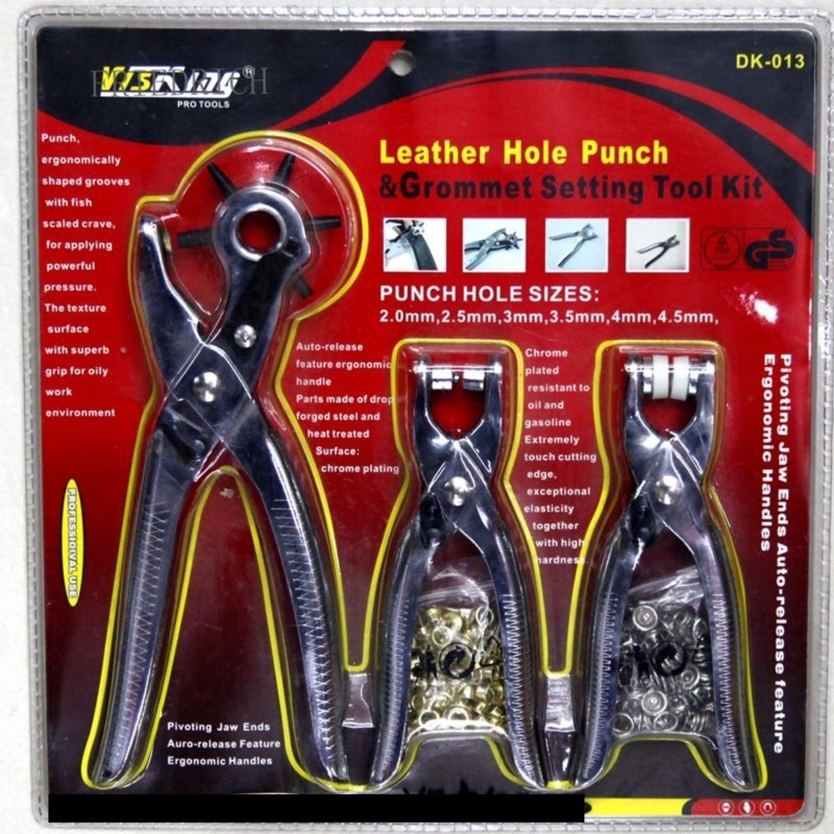 - Kanvas, deri ve diğer kumaşlarda çeşitli boyutlarda delikler açmak için mükemmeldir
