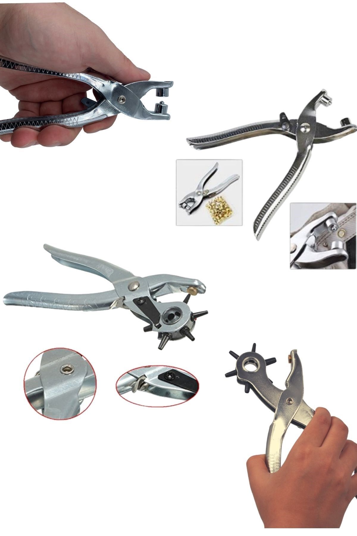 Kemerler, deri, plastik, kauçuk, tuval, kumaş, karton, eyer, zımba ve benzeri malzemelerde yuvarlak delikler delmek için kullanabilirsiniz