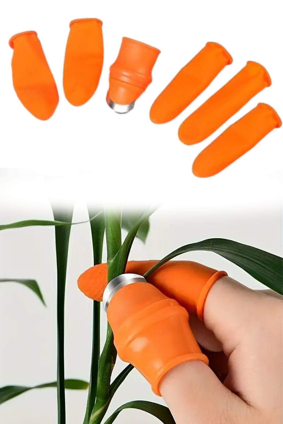 AD 5 Parça Pratik Parmak Koruyucu + 1 Parça Baş Parmak Bıçaklı Eldiven Sebze Meyve Soyucu Kesme Ayıklayıcı Silikon Set