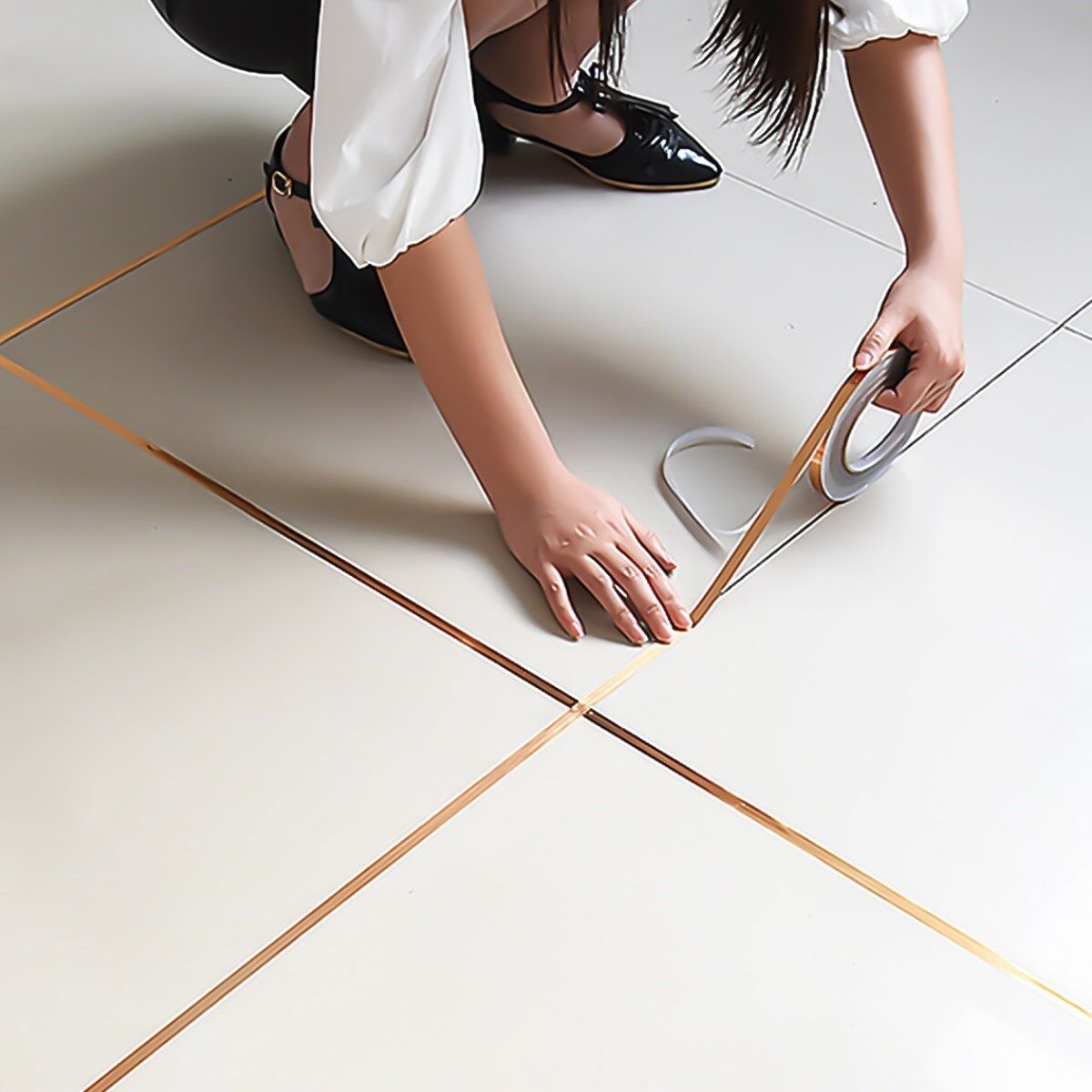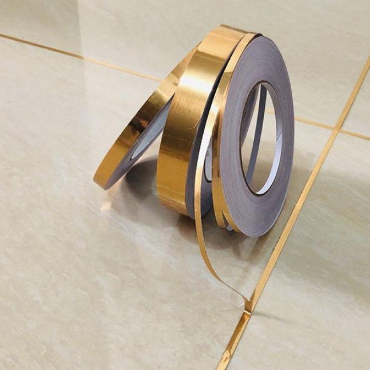 AD 50 Metre Fayans Arası Şerit Dekoratif Yapışkan Renkli Dekor Su Geçirmez Sızdırmaz Altın Bant