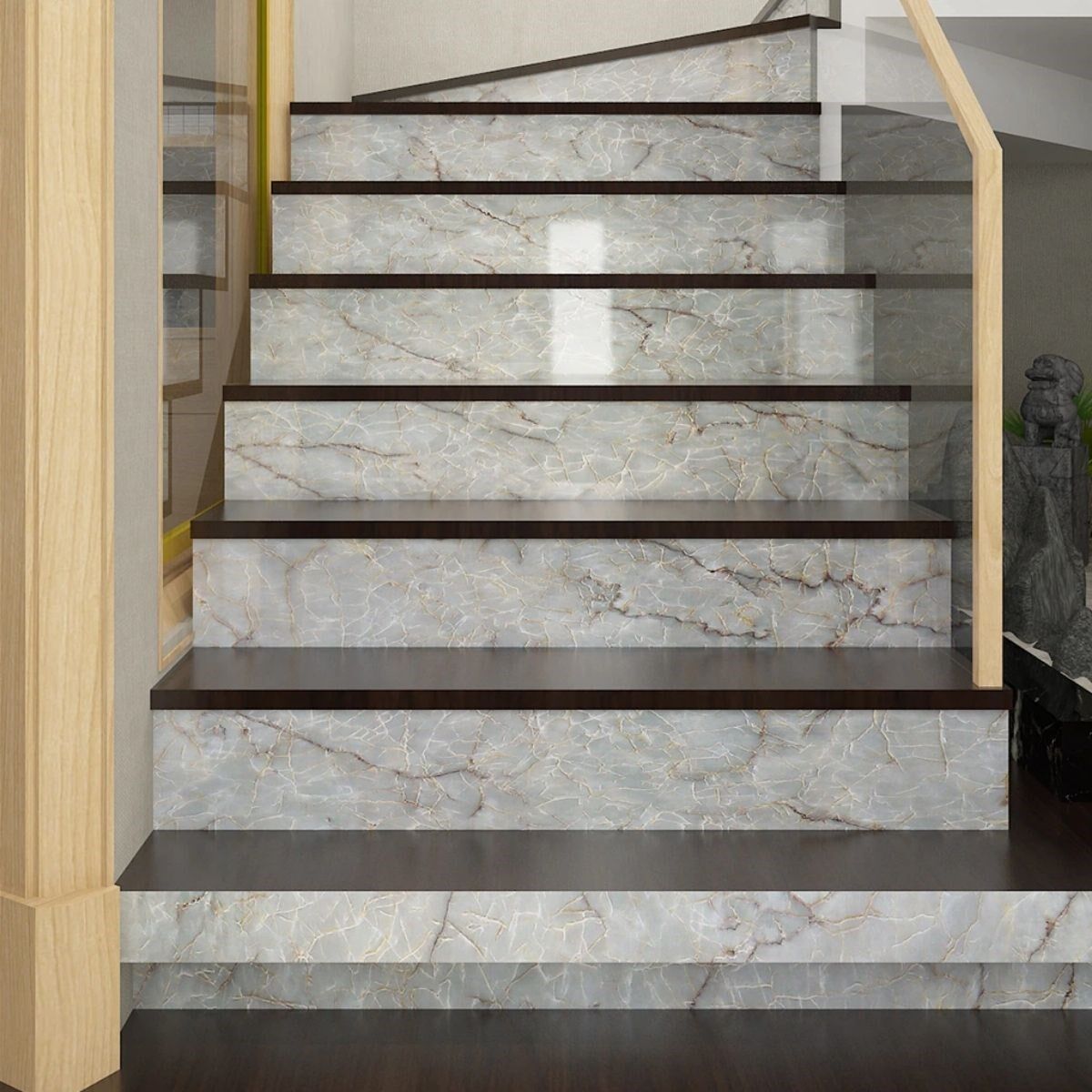 Mermer desenli yapışkan duvar kağıdı ürünün yapıştırırken yüzeyde bir boşluk bırakmamaya özen gösterin