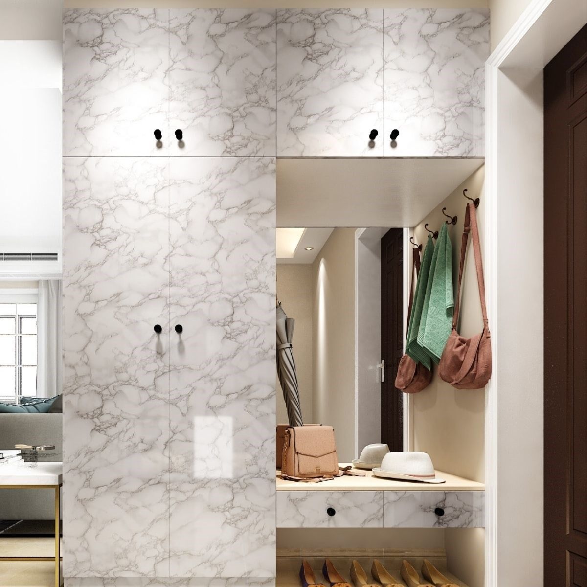Mermer desenli yapışkanlı folyo ürünüyle birlikte evinizde şık ve modern bir görünüm sağlayabilirsiniz