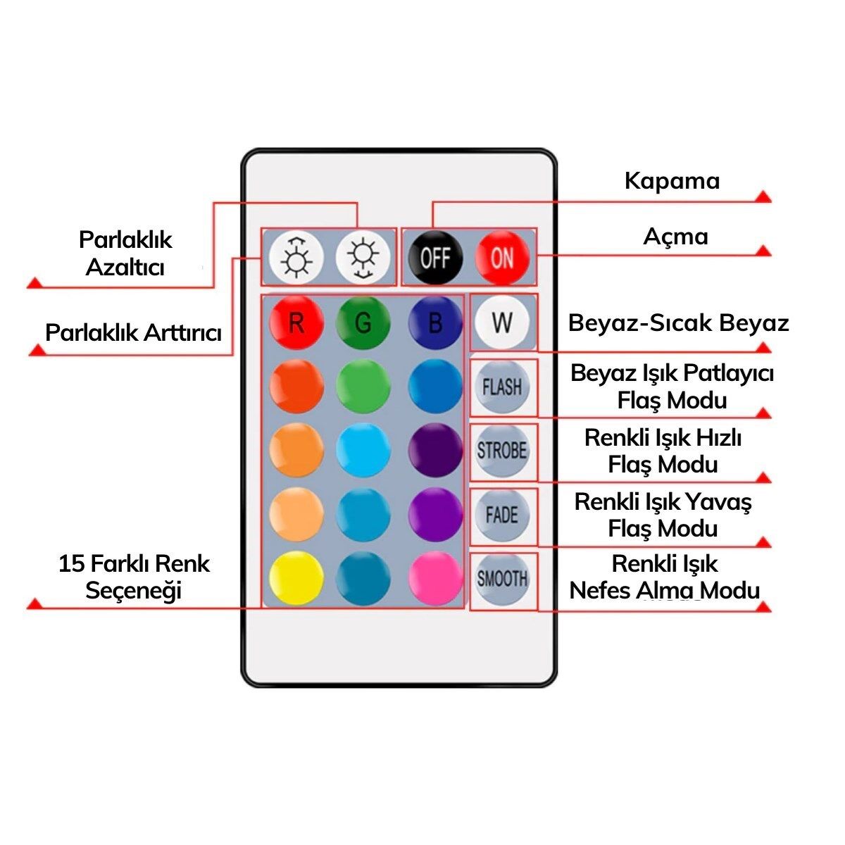- 1 x 15 Farklı Renk Seçenekli Led Ampul