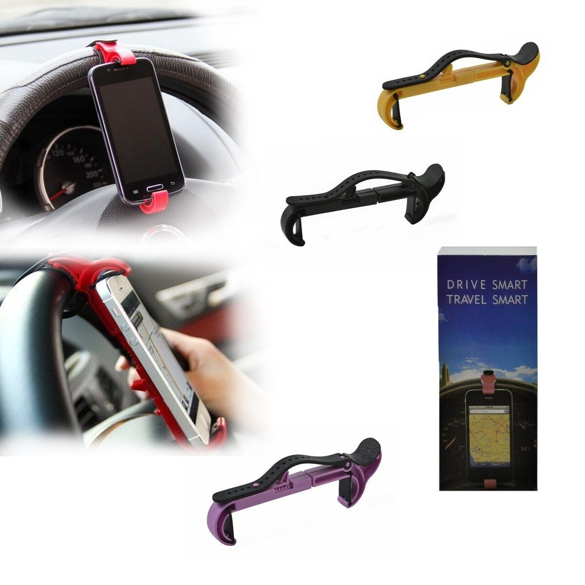 Üniversal araç içi telefon tutucunun yapısı sayesinde tüm telefon ve direksiyon çeşitleriyle uyumlu Direksiyon Arası Telefon Tutucu ile güvenli bir sürüş sağlayın