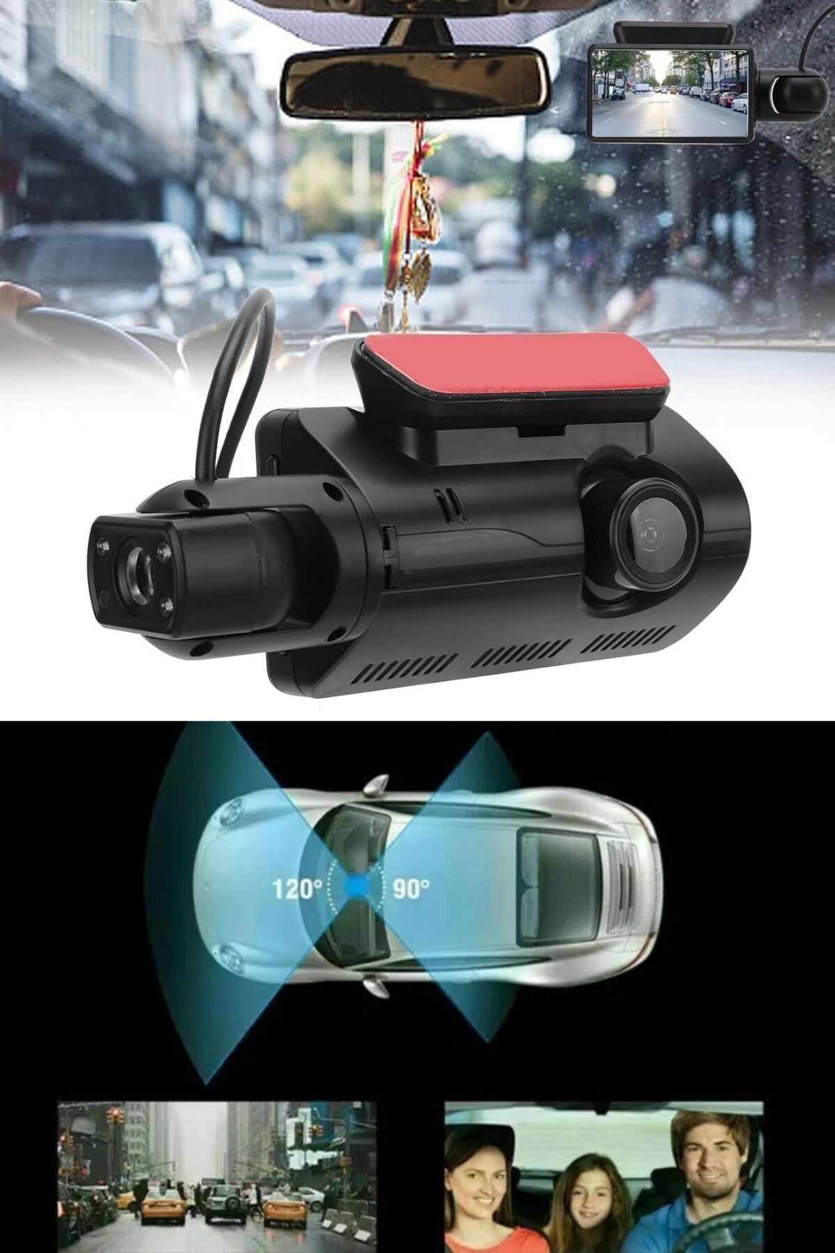AD Araç İçi & Dışı Çift Lensli WiFi Kamera – 1080P HD,Gece Görüşlü, G-Sensörlü DVR Dashcam