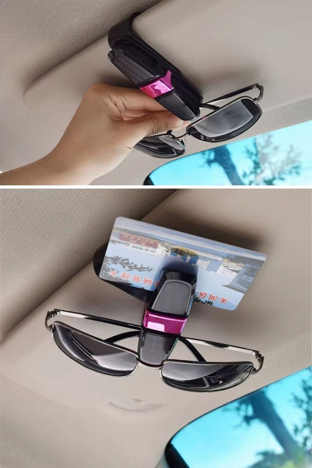AD Araç İçi Güneşliğe Takılan 2'li Gözlük,Kart,Para Takmalık Aparat