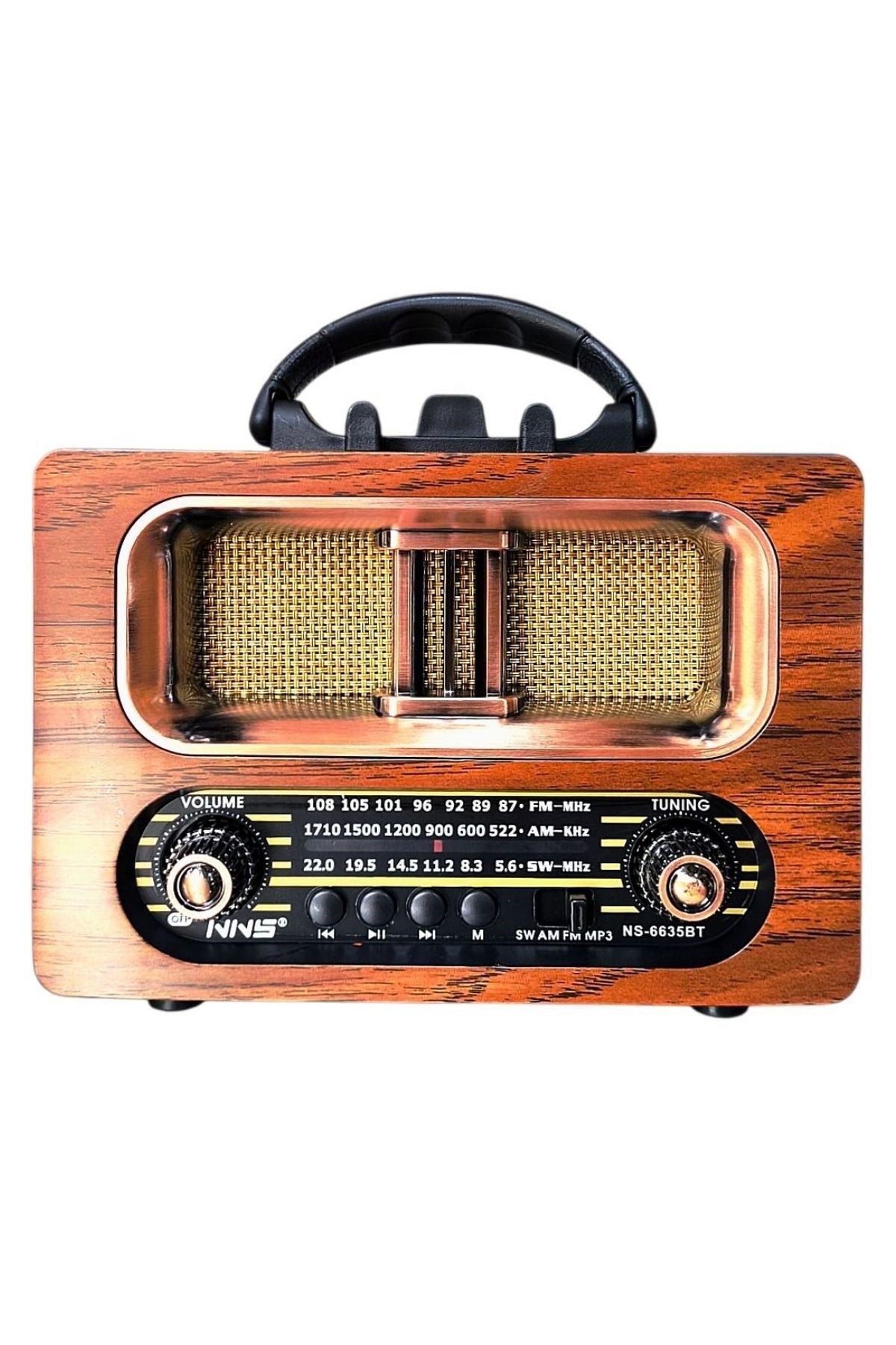 AD Büyük Boy Retro, Nostaljik, Ahşap Tasarım Bluetooth Hoparlörlü, Şarjlı, Taşınabilir FM/AM Destekli Radyo NS-6635