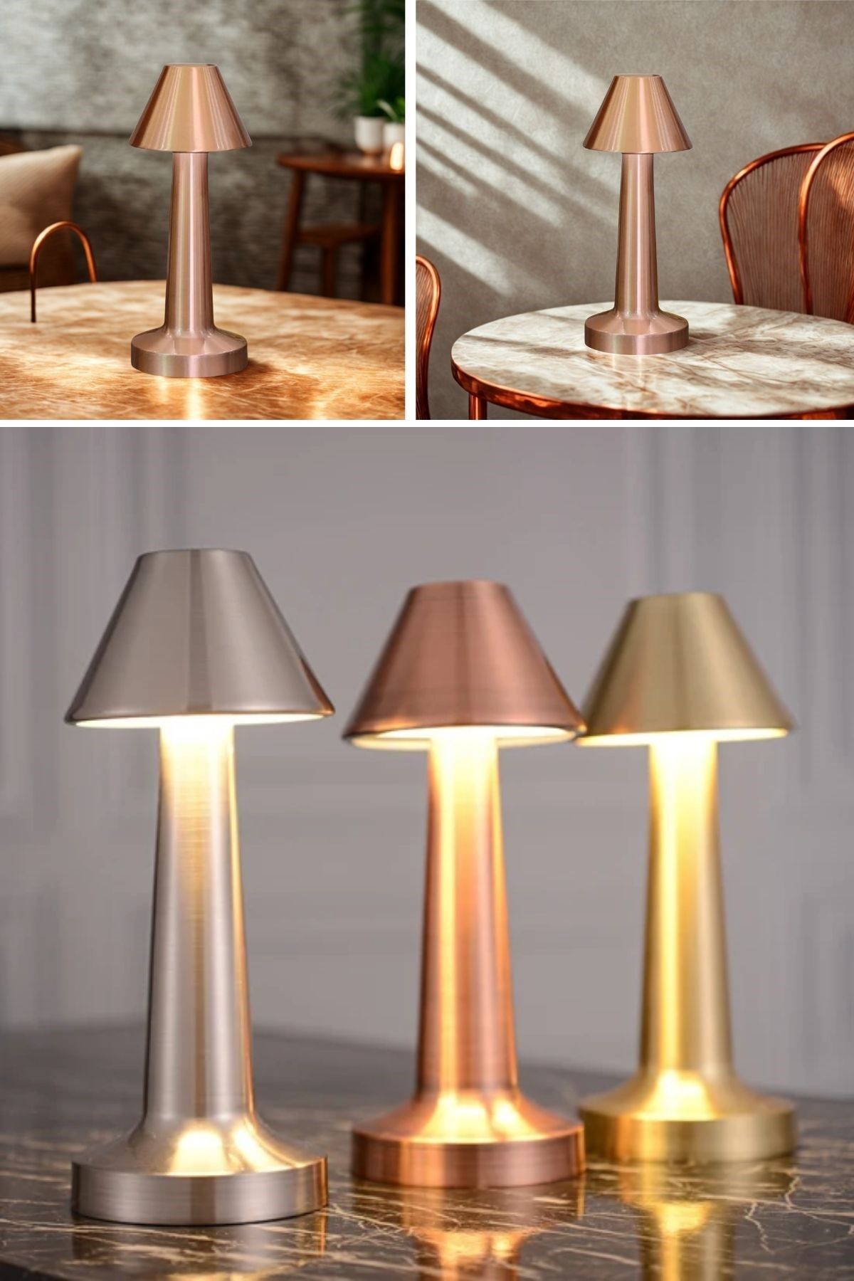 AD Çatı Model Bronz Renk Şarjlı Dokunmatik 3 Renkli LED Masa Lambası