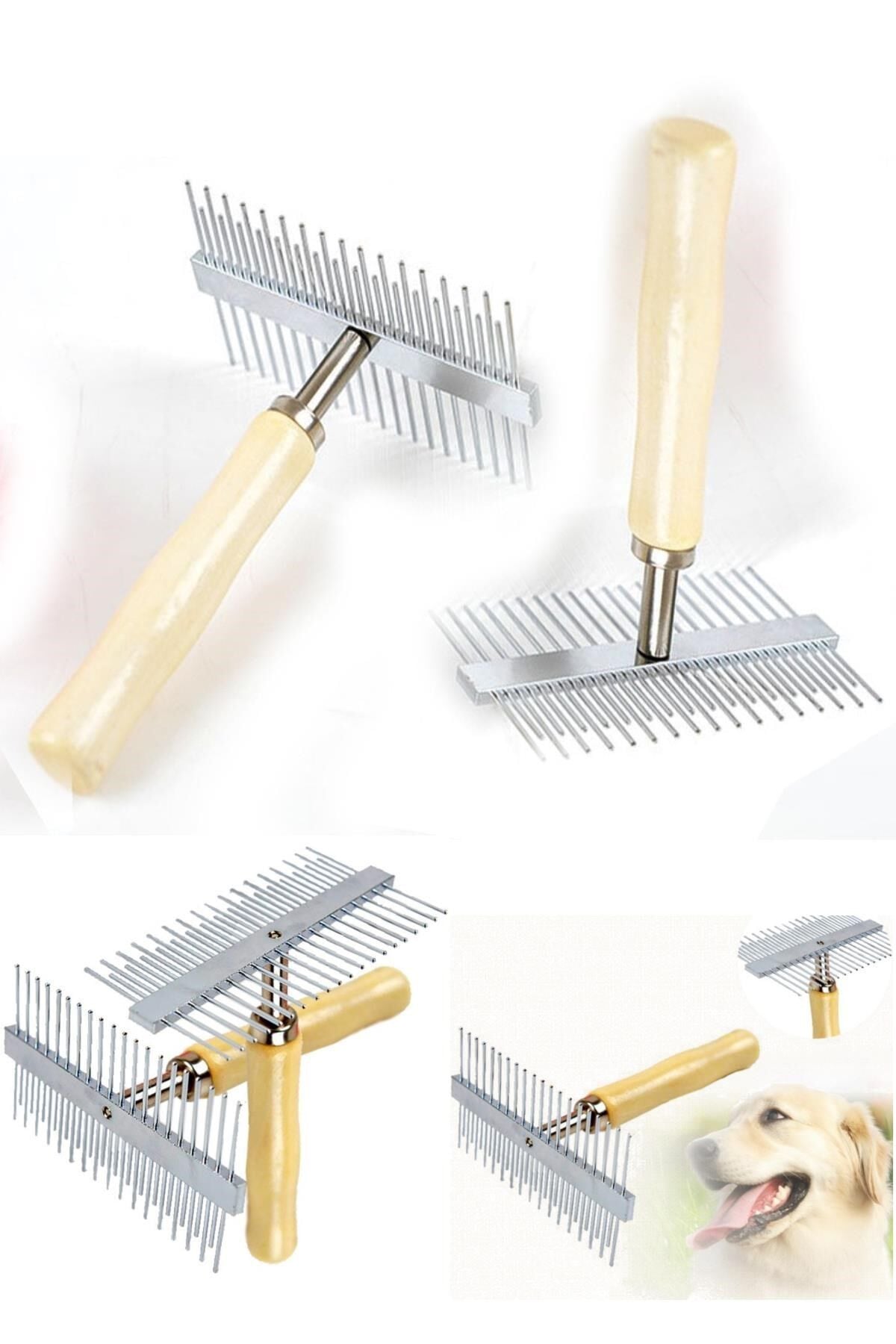 Çift Taraflı Ahşap Saplı Ergonomik Evcil Hayvan Fırçası Tarağı