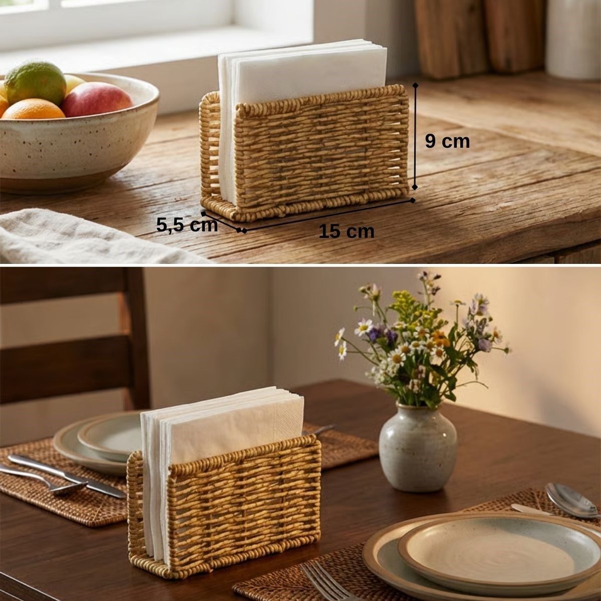 AD Dekoratif Plastik Rattan Dikdörtgen Peçetelik–Doğal Hasır Dokulu Masaüstü Peçete Standı