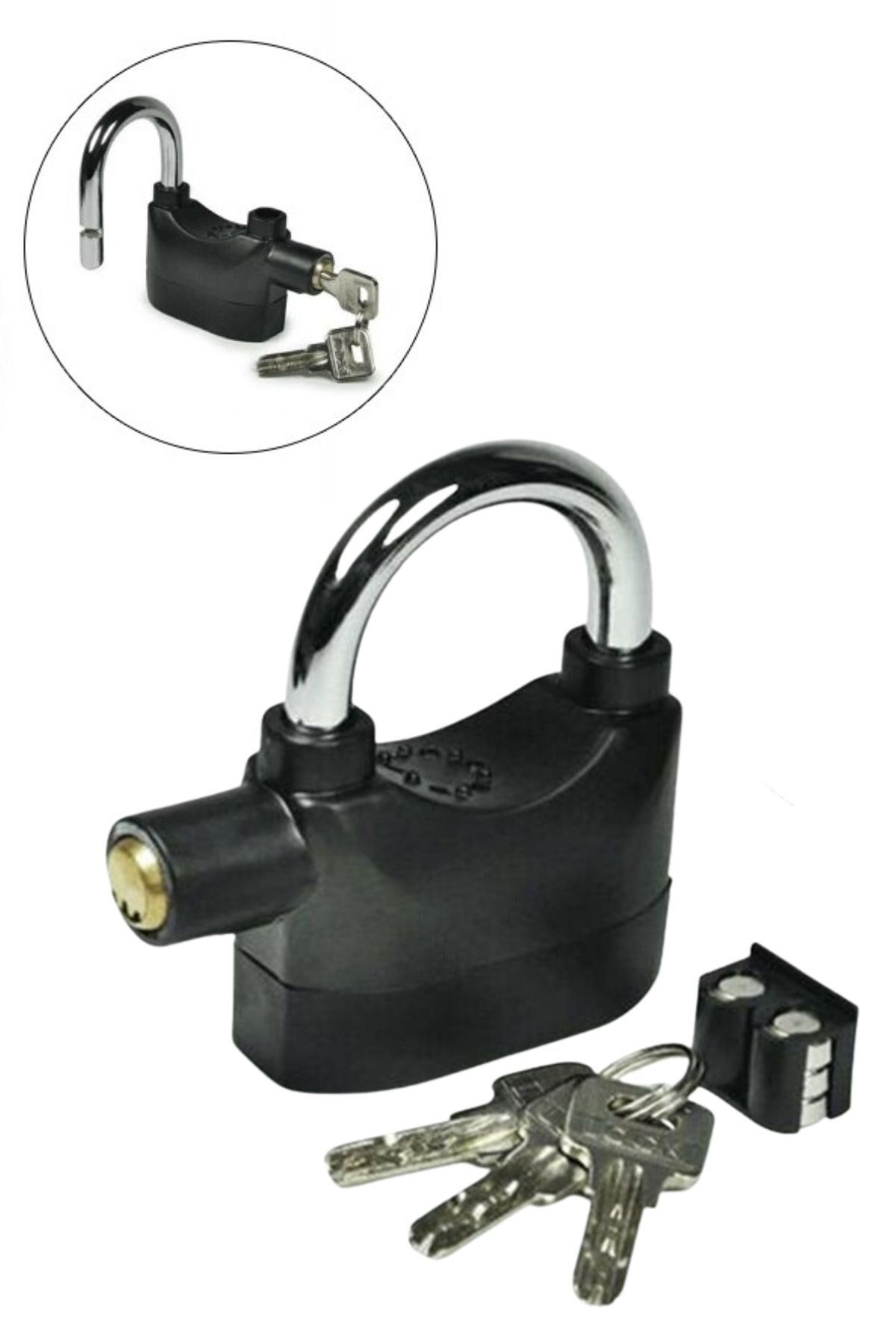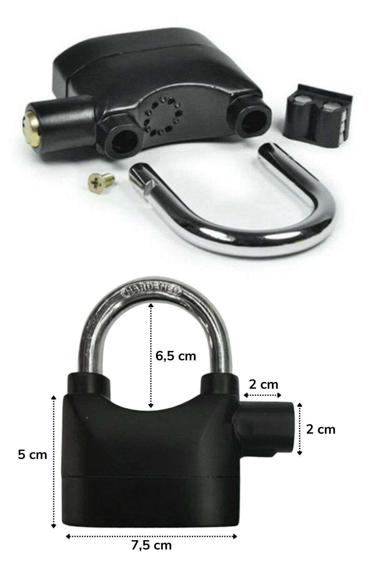 Çok fonksiyonlu asma kilidimiz ile içiniz artık çok daha rahat olacak Kilitleme işlevinizi alarm fonksiyonumuz ile birleştiren asma kilidimiz, vurulduğunda veya sarsıldığında yüksek ses çıkarabilen dahili hareketi, tetiklenmiş bir üründür Bu sayede herhangi bir uygulama ile alarm çalmaya başlar ve sizi hırsızlık vb olaylara karşı harekete geçirir
