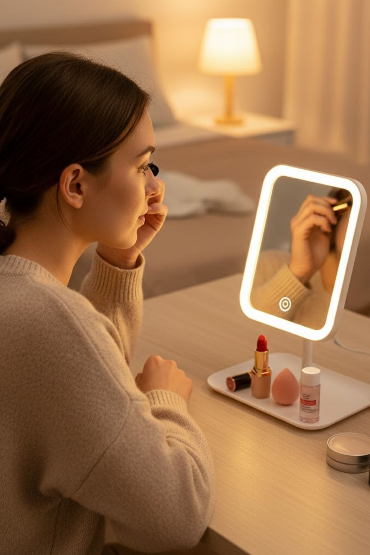 USB veya pil ile çalışabilen bu çok yönlü ayna, hem ev kullanımında hem de profesyonel makyaj masalarında vazgeçilmez bir yardımcıdır.