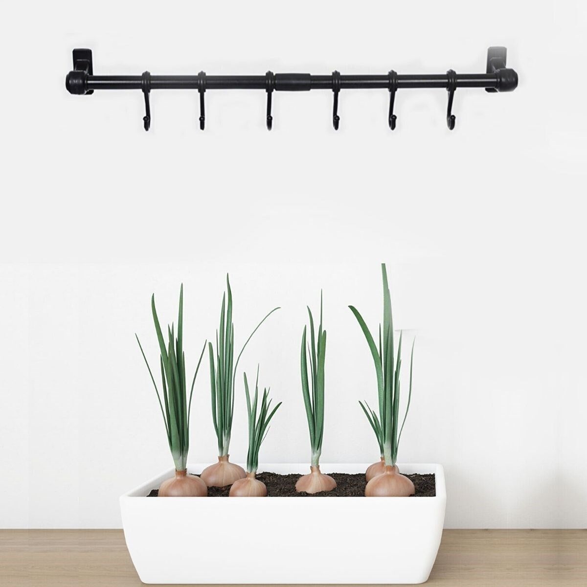 Siyah askı ve 6 adet kanca setinden oluşan bu ürün, hem mutfağınızda çok şık duracak hem de sürekli kullanabileceğiniz bir ürün olacakPratik bir şekilde her daim elinizin altında ve gözünüzün önünde olacak bu ürün mutfağınızın şıklığına şıklık katacak 6 kancadan oluşan ve duvara monte edilebilen ürüne servis kaşıklarınızı, kupalarınızı, muglarınızı, kahve ve çay fincanlarınızı , mutfak havlularınızı, mutfak bezlerinizi asabilirsiniz