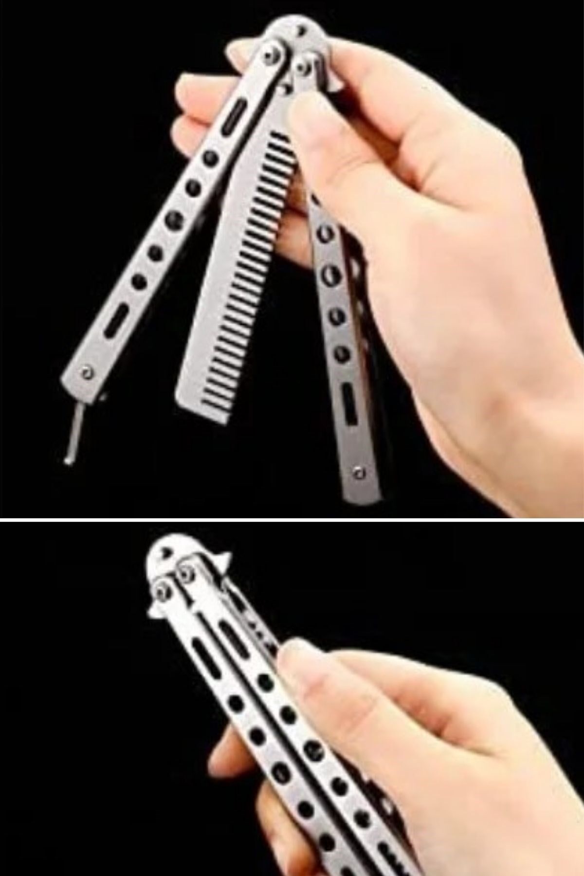 AD Gri Katlanabilir Paslanmaz Çelik Kelebek Bıçak Tarak – Sakal & Bıyık Fırçası, Profesyonel Saç Kesimi İçin Tarak