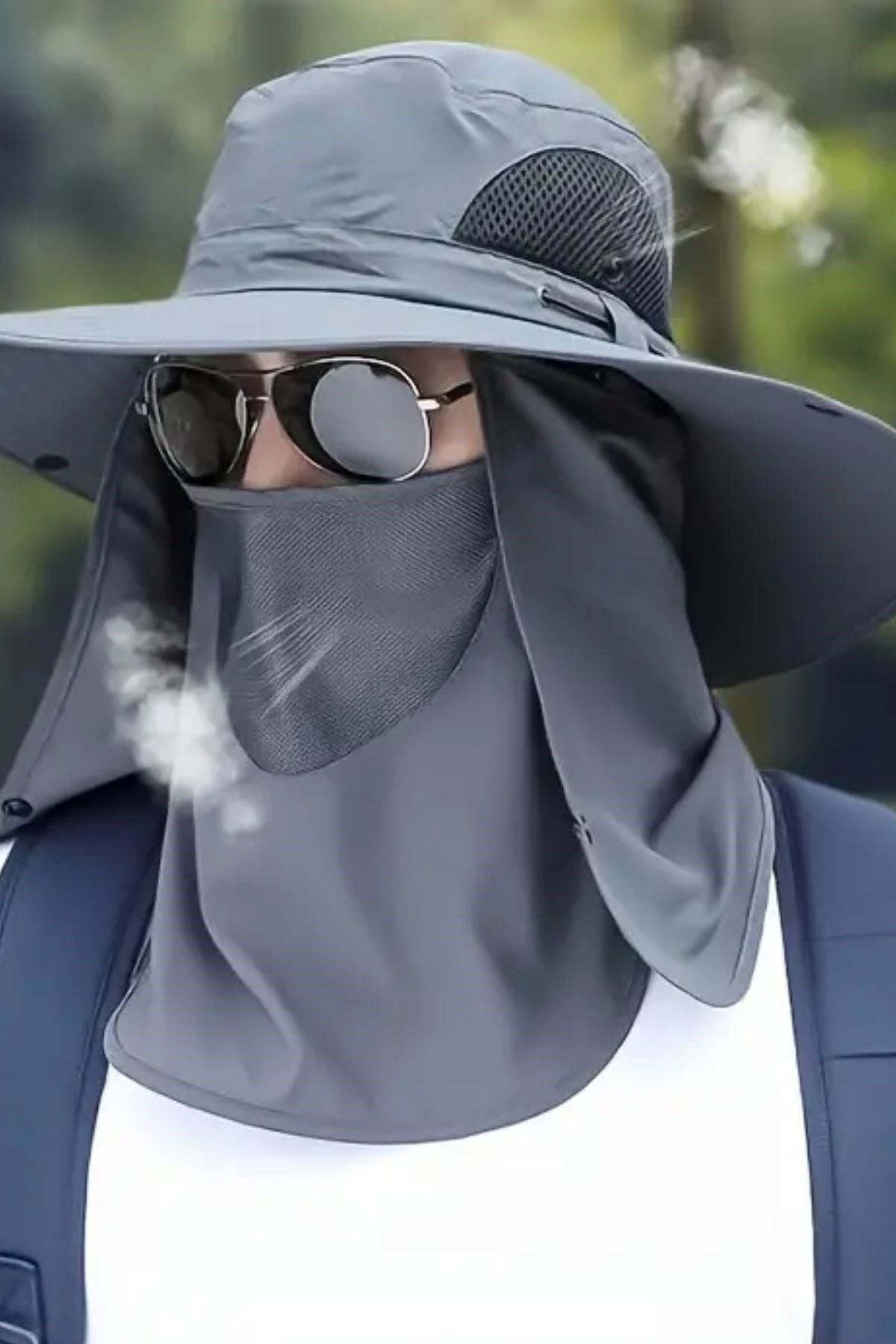 ADGüneş Koruyuculu Nefes Alabilen Maskeli ve Boyun Kapaklı Geniş Kenarlı Balıkçı Şapkası