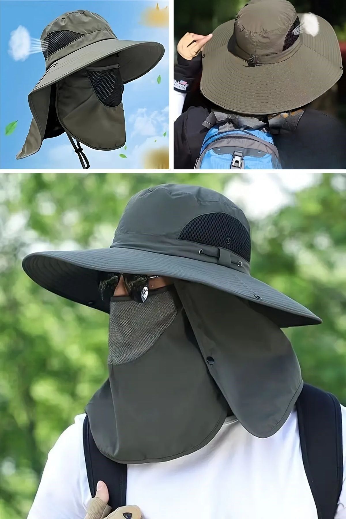 AD Güneş Koruyuculu Nefes Alabilen Maskeli ve Boyun Kapaklı Geniş Kenarlı Balıkçı Şapkası