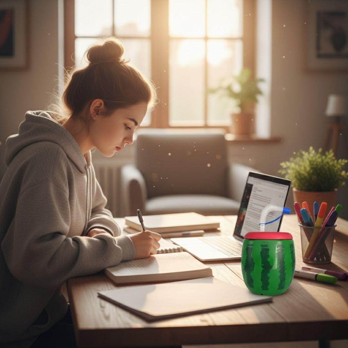 AD Karpuz Model Kendiliğinden Pipetli 900 ml Suluk, Matara