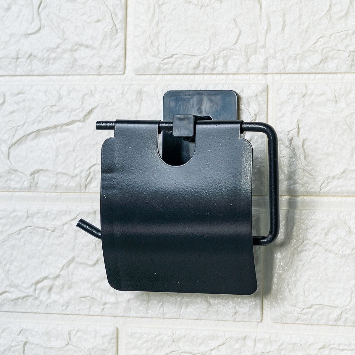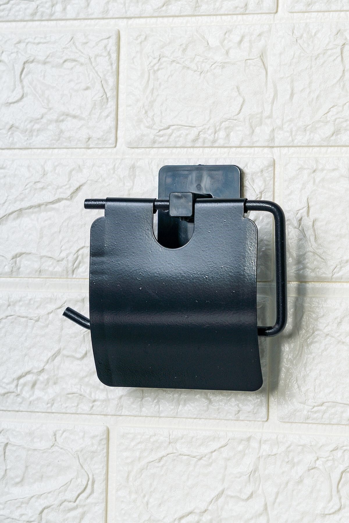AD Kendiliğinden Yapışkanlı Siyah Paslanmaz Metal Kapaklı Tuvalet Kağıtlığı Aparatı