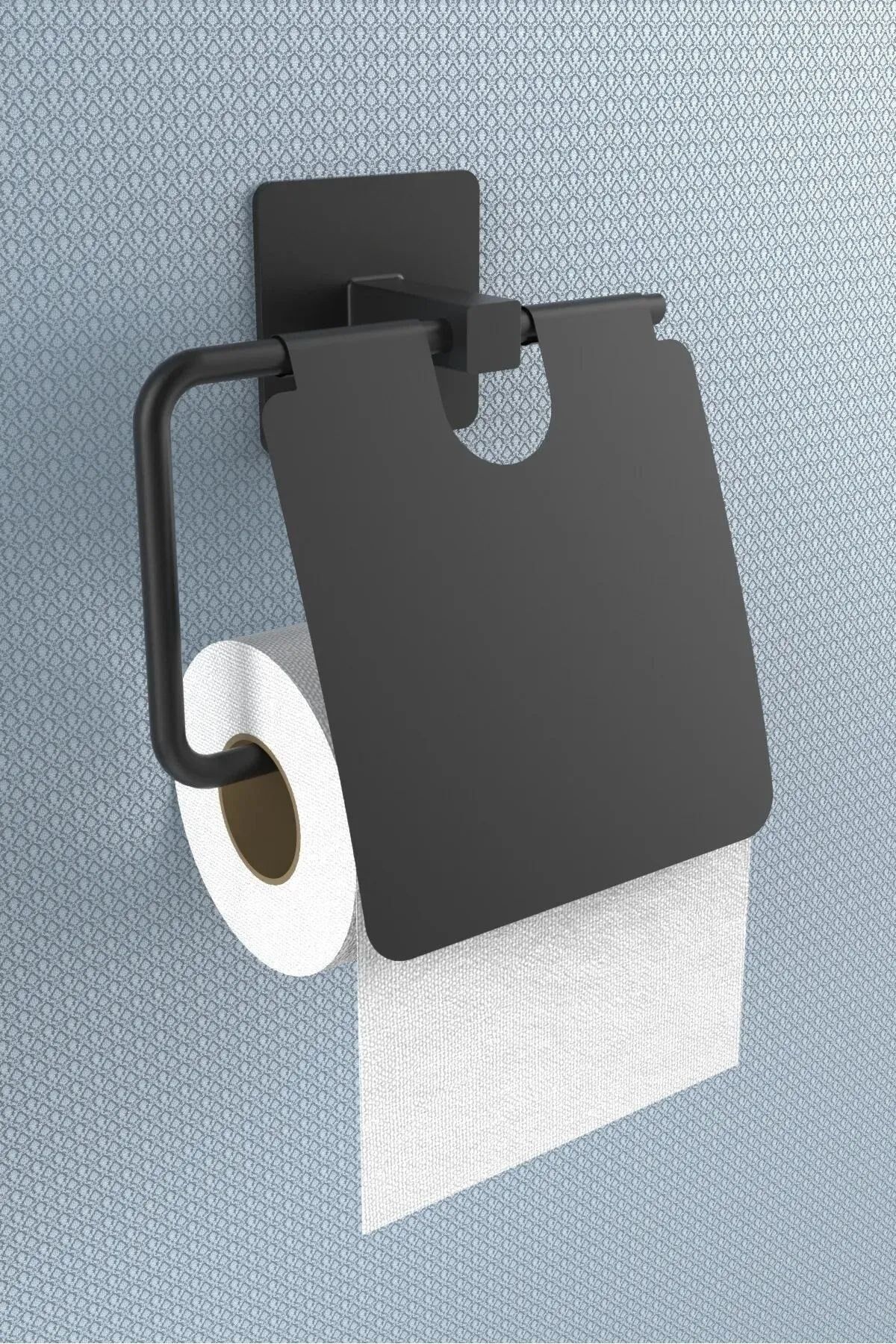 Kendiliğinden yapışkanlı siyah paslanmaz metal kapaklı tuvalet kağıtlığı aparatı, şık tasarımıyla banyonuza modern bir dokunuş katarken aynı zamanda pratik bir kullanım sunar. Tuvalet kağıdınızı hijyenik bir şekilde saklamak ve düzenlemek için ideal bir çözümdür.