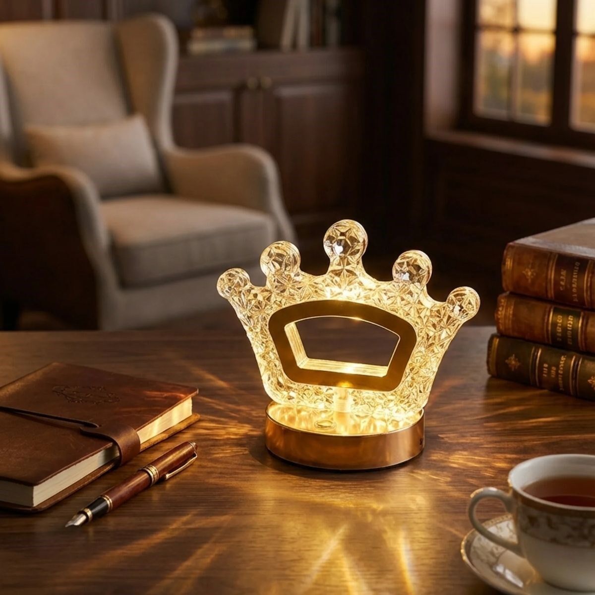 AD Kral Tacı Model Kristal LED Masa Lambası – Dokunmatik, 3 Renk Işık Modlu, Şarjlı Mini Dekoratif Gece Lambası