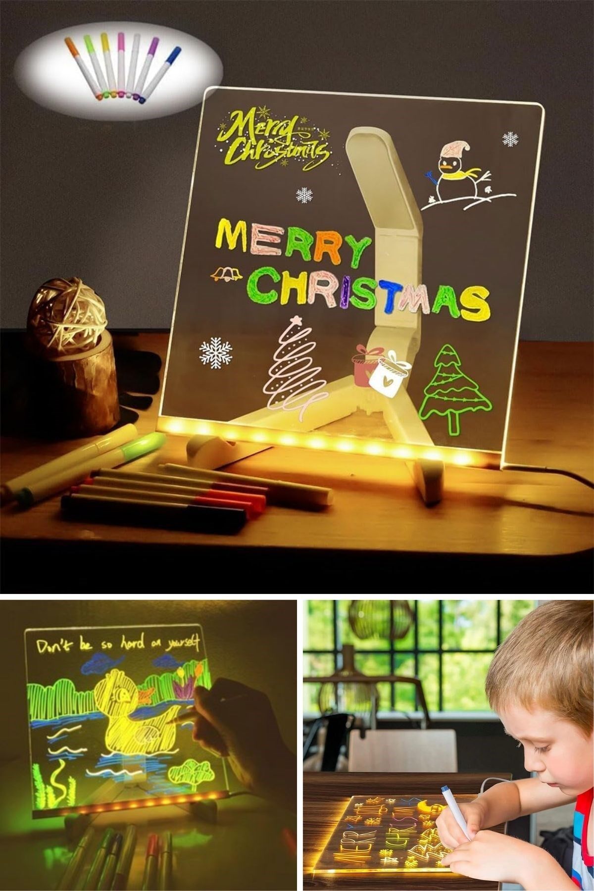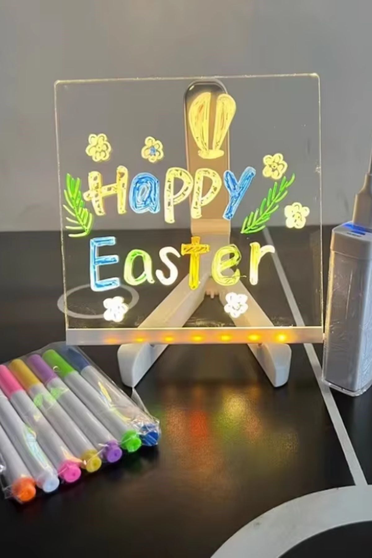 Yaratıcılığınızı ışıkla buluşturun! AD LED Işıklı Yazı Panosu, 20x20 cm boyutu ve renkli fosforlu kalemi ile notlarınızı, mesajlarınızı ve çizimlerinizi eğlenceli bir şekilde sergilemenizi sağlar. Kendiliğinden ışıklı yapısı sayesinde yazılarınız karanlıkta bile canlı ve dikkat çekici görünür.