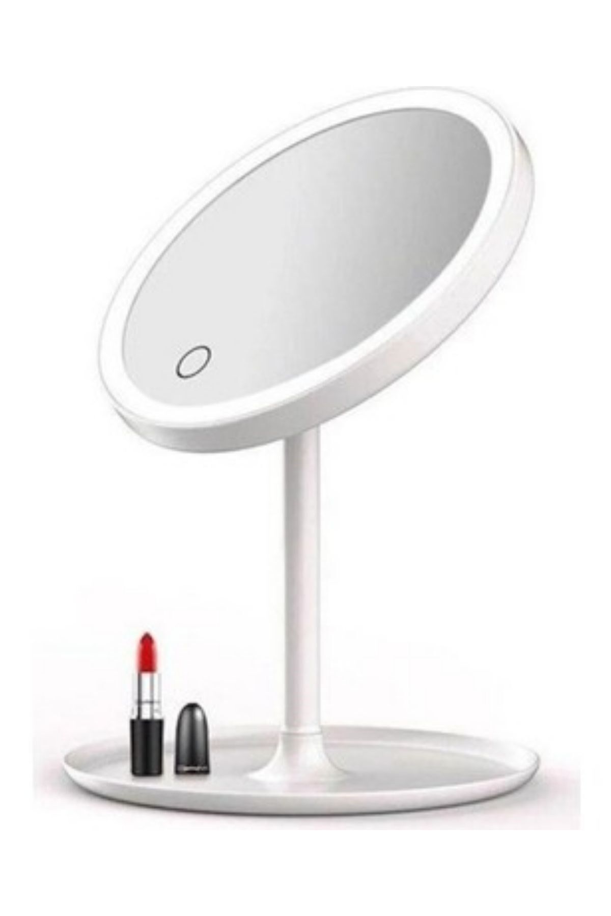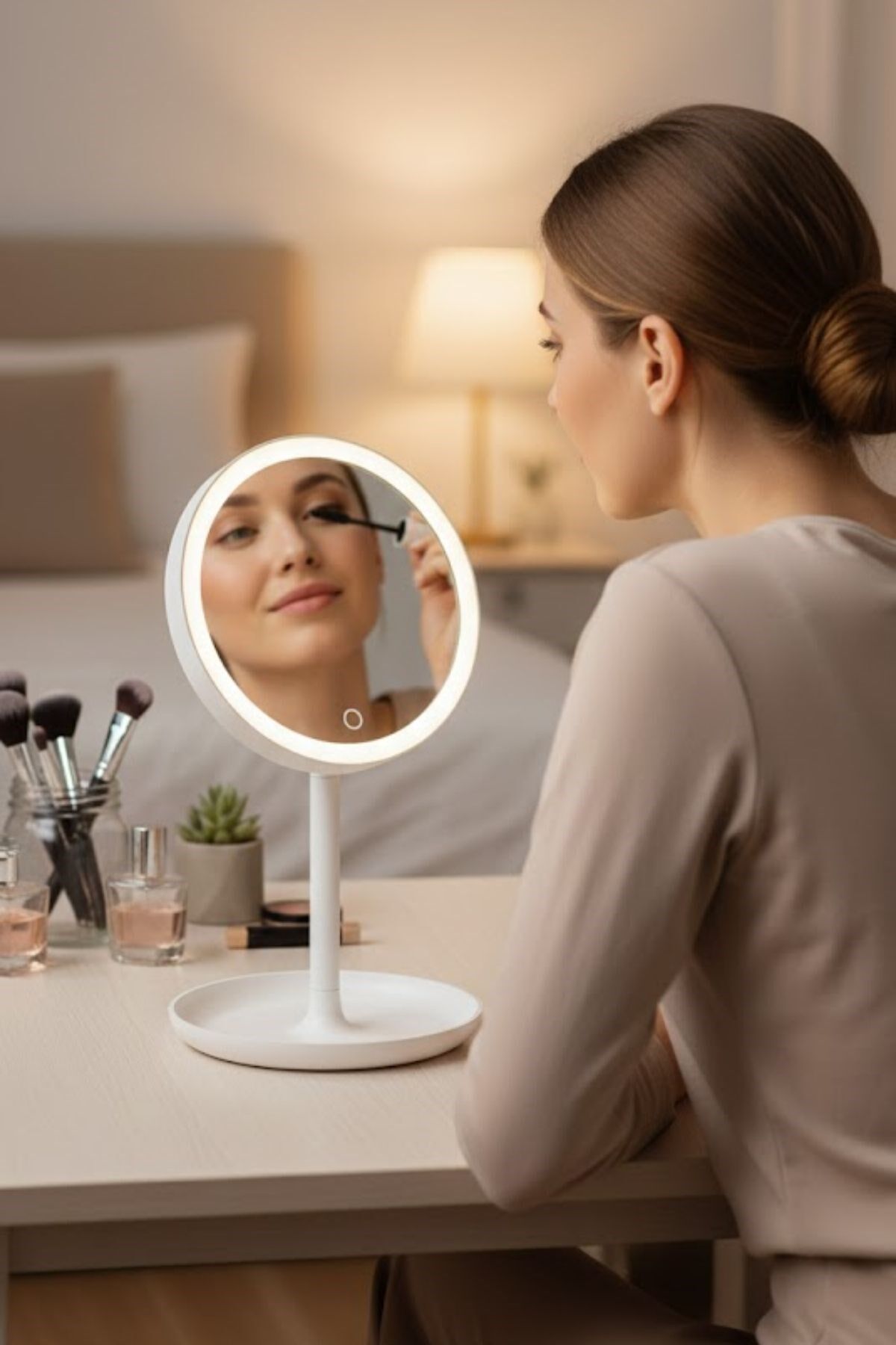 AD LED Işıklı Yuvarlak Makyaj Aynası – Dokunmatik Kontrollü, Işık Tonu Ayarlanabilir, 360° Döner Masaüstü Profesyonel Makyaj Aynası