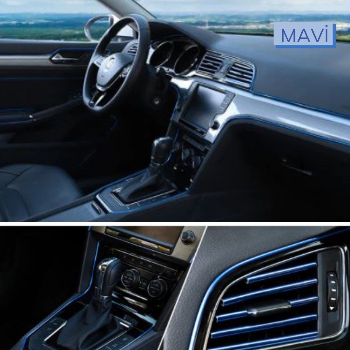 AD Mavi Araba OtoTrim Dekorasyon Şeridi Kauçuk Elastik Kolay Kurulum 5 metre Şerit Bant