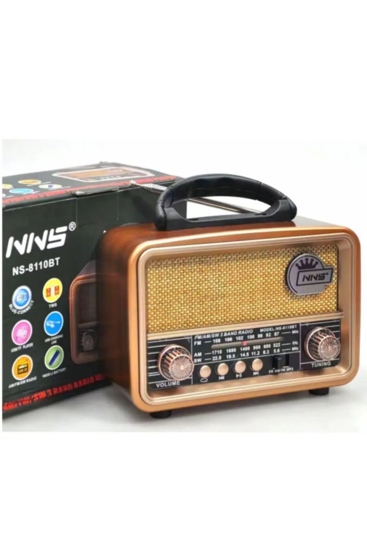 Nostaljiyi sevenler ve pratik bir müzik çözümü arayanlar için AD Orta Retro Bluetooth Hoparlörlü Radyo NS-8110, şıklığı ve işlevselliği bir arada sunar!